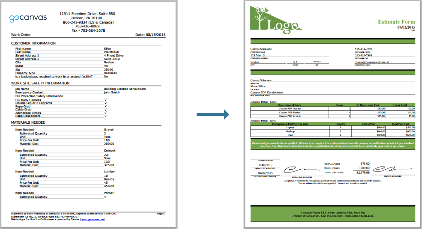 Designing a PDF that reflects your brand and engages your audience is simple with GoCanvas. Choose from three options based on your customization needs: